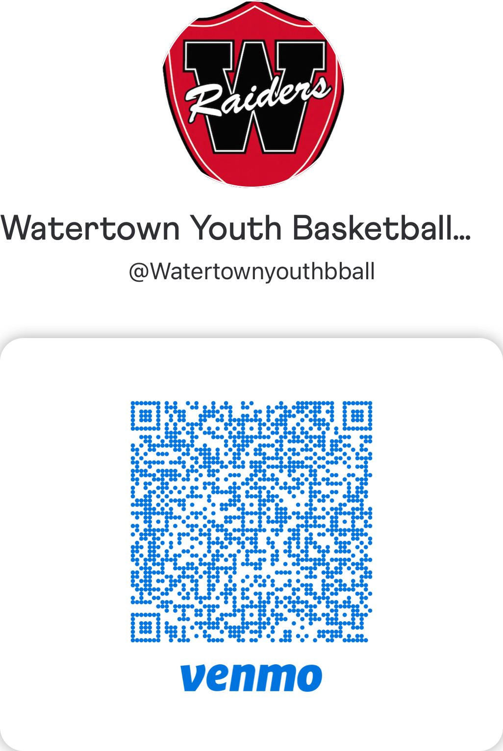 To send money to Watertown Youth Basketball, please use the Venmo payment details below.